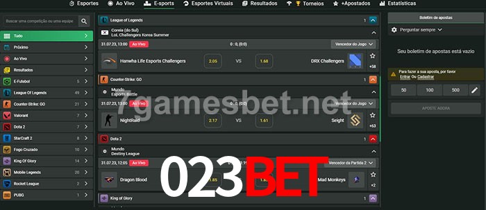 O 023bet oferece uma grande seleção de opções de apostas em e-sports com probabilidades competitivas